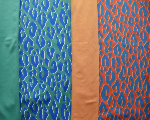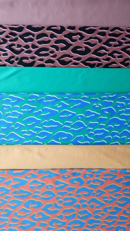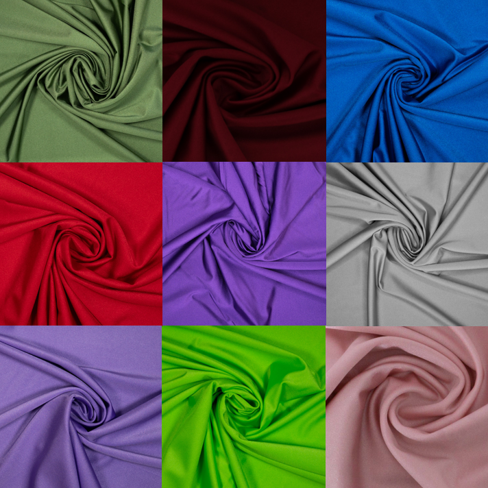 Wähle aus unifarbenen Stoffen in matt und glänzend aus Sportjersey und Samt, oder aus vielen bunten Badelycra-Stoffen.