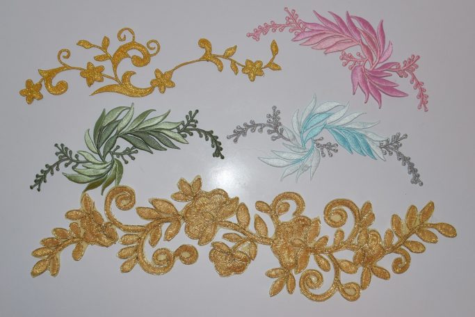 Spitzenapplikationen werden aufgebügelt und /oder aufgenäht. Der Aufpreis richtet sich nach dem Aufwand