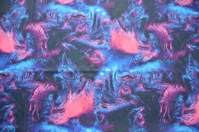 Folienjersey ist ein hauchdünner, dehnbarer Stoff, der mit Farbe beschichtet ist. Trotzdem ist er atmungsaktiv. Besonders geeignet ist er zum Poledance, da er eine gute Haftung hat. Nicht so stark wie die Silikon- und Latexbeschichtungen, aber gerade so, dass man damit an der Pole trainieren und die Haut schonen kann.